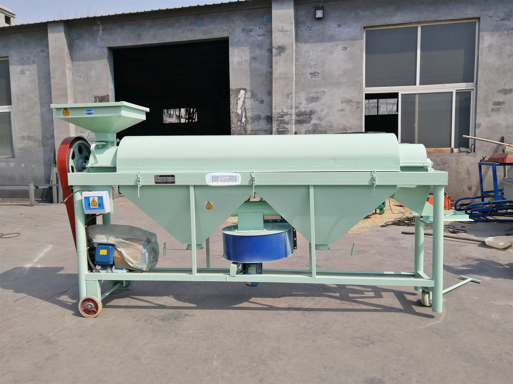 【產(chǎn)品簡(jiǎn)介】水稻除芒機(jī),是一種專(zhuān)門(mén)用于對(duì)帶芒水稻種子及其它帶芒刺種子進(jìn)行芒、刺處理的機(jī)具。適用于種子加工成套設(shè)備的配套使用。 結(jié)構(gòu)特點(diǎn) 該機(jī)主要由:機(jī)殼、傳動(dòng)軸、打桿、活門(mén)調(diào)節(jié)裝置、驅(qū)動(dòng)裝置等部件組成。采用旋轉(zhuǎn)打桿及其配合的內(nèi)襯耐磨板,對(duì)種子表面施加搓擠、打擊作用,以除去芒、刺毛、松散的穎片及未脫凈的穗頭、莢殼等。通過(guò)清除芒、刺,改善了種子的表面,有利于種子加工的下道工序的作業(yè)。