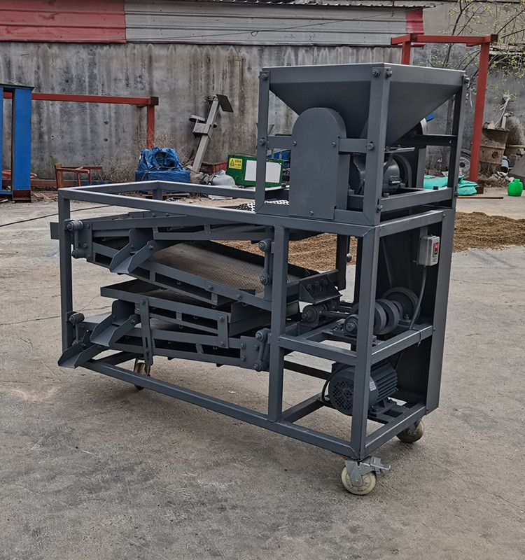 【產(chǎn)品簡介】花椒清選機(jī)主要是將原枝花椒粉碎,然后將椒枝、椒葉、椒殼、椒籽等分別篩選出來,代替了繁瑣的人工篩選工作,以前人工篩選的話需要將采摘的原枝花椒晾干或烘干,然后在敲打粉碎脫籽,每兩個人一組在進(jìn)行篩分,將小椒和雜質(zhì)通過篩漏篩選出來,然后在通過簸箕進(jìn)行顛殼,最后再過一道篩分,就完成了整個篩分過程。這樣干一天會非常累,并且產(chǎn)量上也跟不上去,所以現(xiàn)在椒農(nóng)們都在選用花椒篩分機(jī)。
